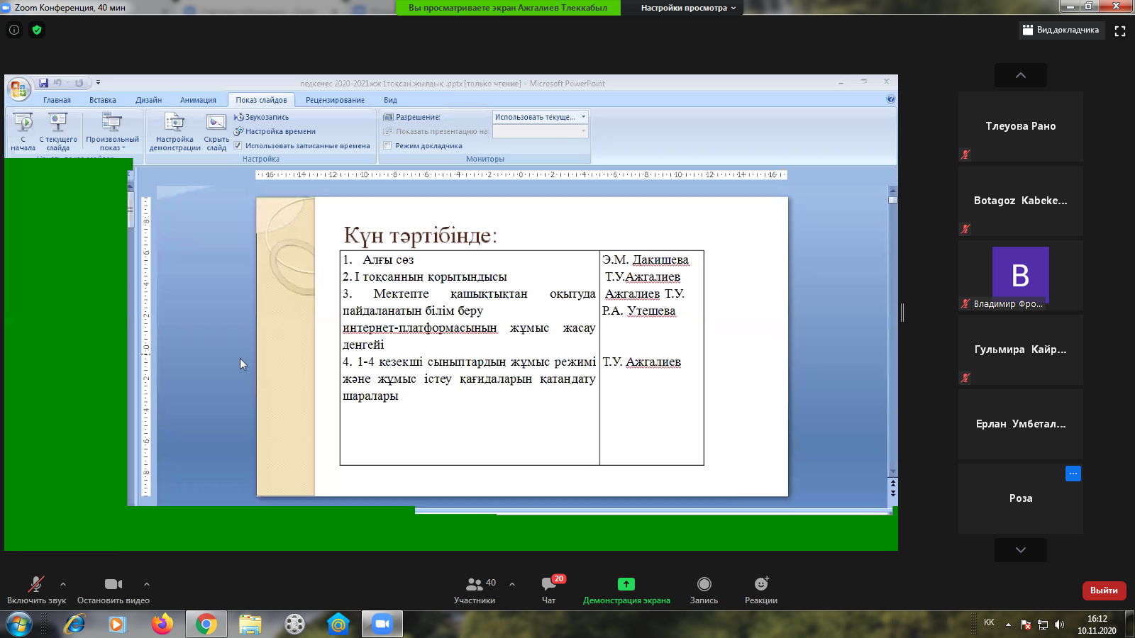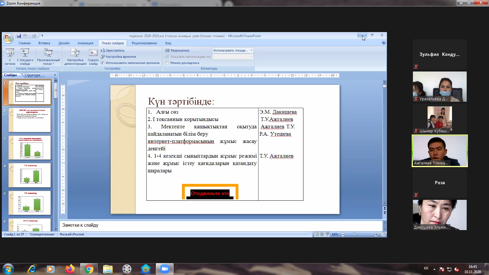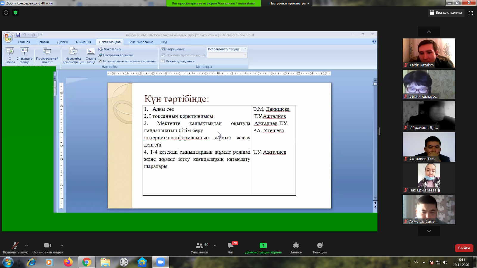 Бүгін I тоқсанды қорытындылау мақсатында мектебімізде қашықтықтан ZOOM платформасы арқылы педагогикалық кеңес оздырылды.