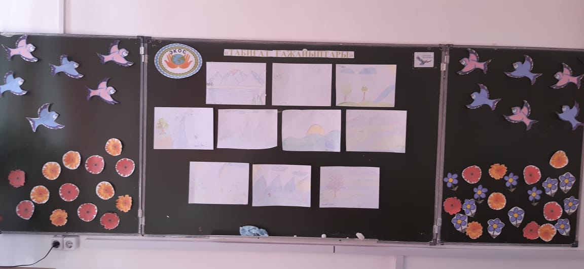 Лагерьдің алғашқы күнінде мектебімізде «Экос» бағдарлы лагерінде топ жетекшісі, А.Зиналиева оқушыларға лагерь кезіндегі қауіпсіздік ережелері туралы түсінік берді. Сонымен қатар оқушыларға «Табиғат ғажайыптары» тақырыбында қызықты деректер айтып, суреттер салдырды.